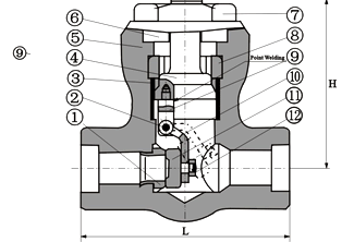 | 6 | 閥蓋 | A105 | A182F22 | A182F304(L) | A182F316(L) |